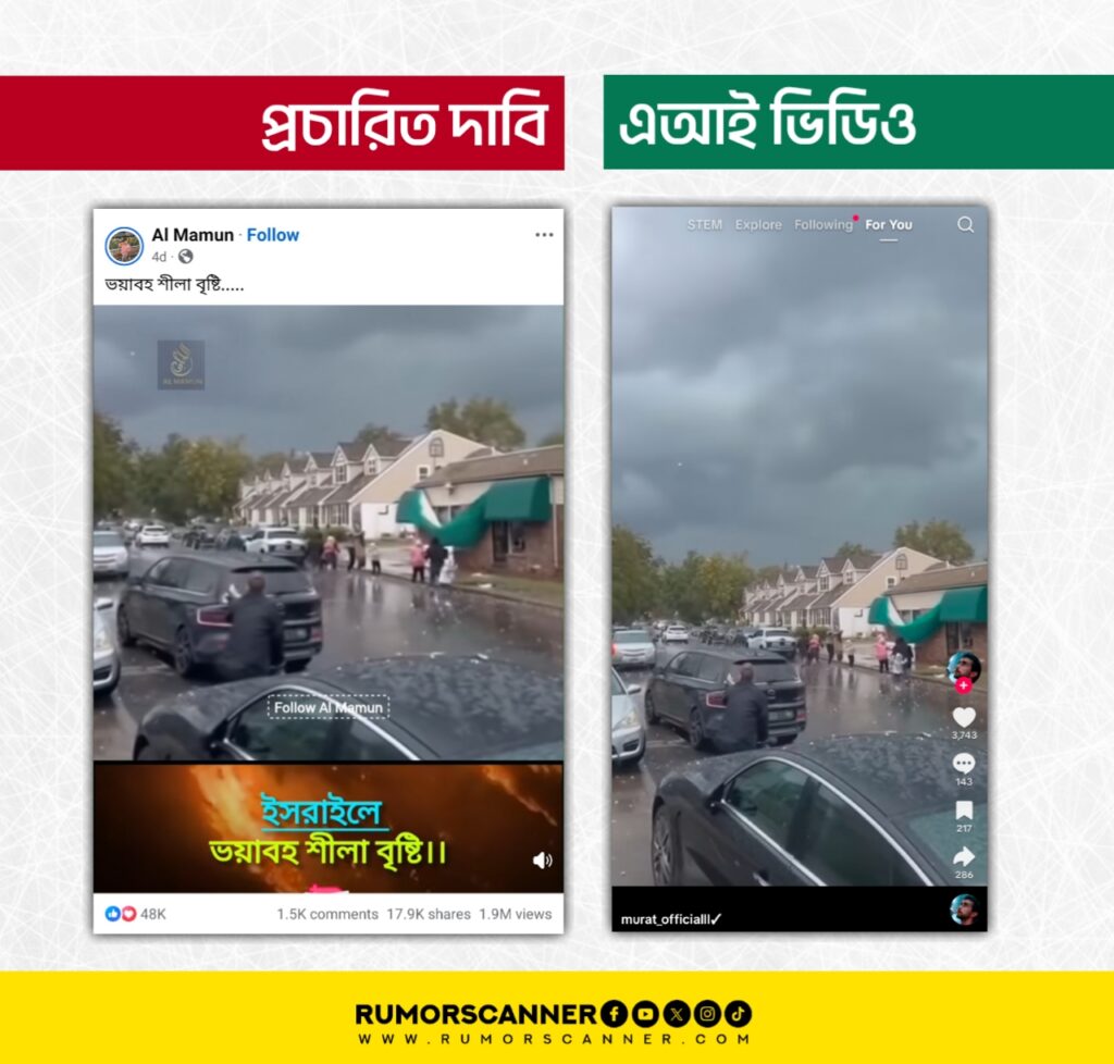 ইসারায়েলে ভয়াবহ শিলাবৃষ্টি দাবিতে এআই ভিডিও প্রচার