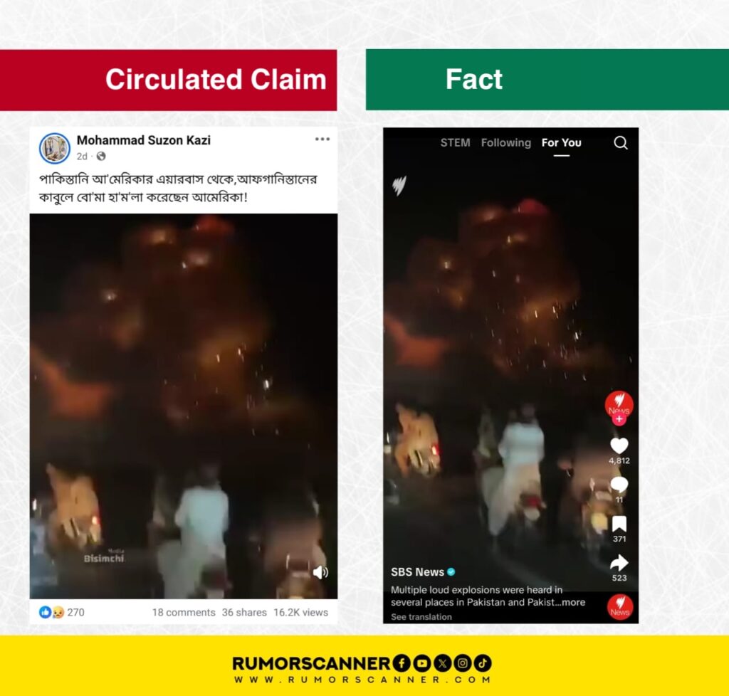 An investigation by the Rumor Scanner team found that the circulated video is not from Kabul, Afghanistan; rather, it is of the bombing during India’s Operation Sindoor in Pakistan last May.