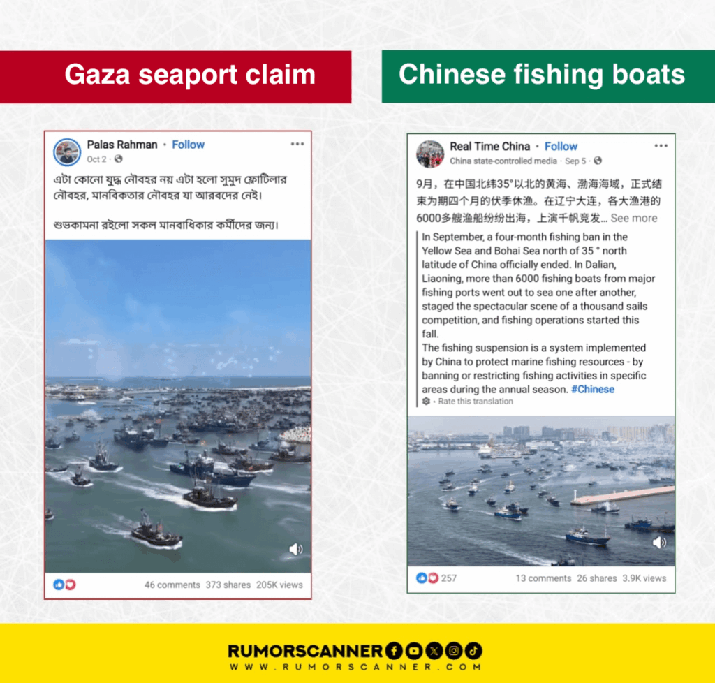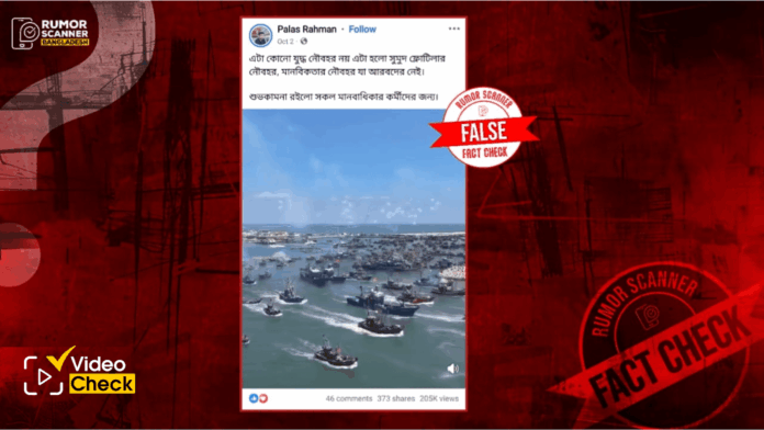 An investigation by the Rumor Scanner team found that the video in question is not of the Global Sumud Flotilla; rather, a video of fishermen setting out to sea during the fishing season from various ports in South China has been circulated with the said claim.