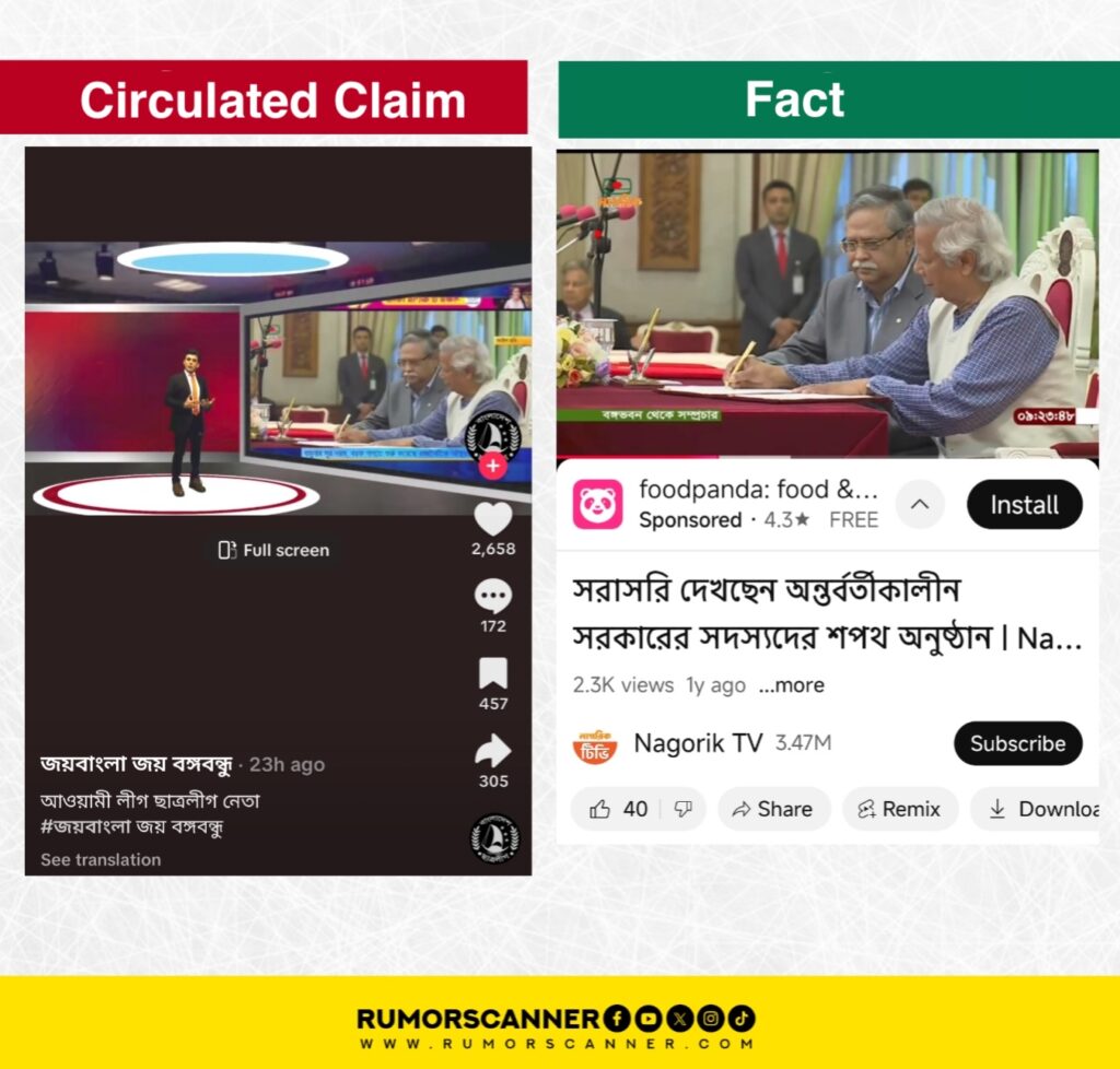 A subsequent investigation into the circulated video found a match with a live video from Nagorik TV dated August 08, 2024. The video was actually of the oath-taking ceremony of the advisers to the interim government.