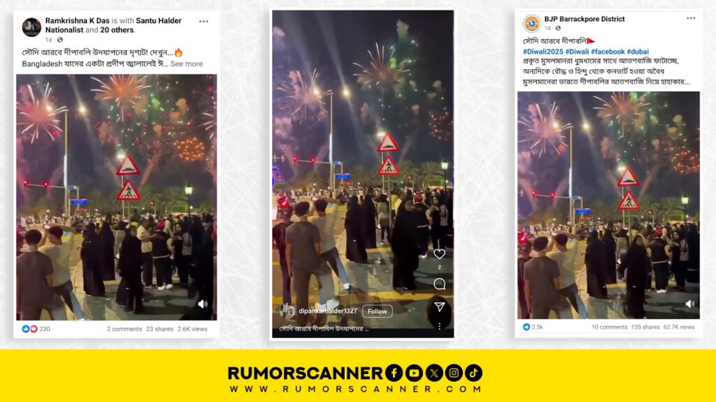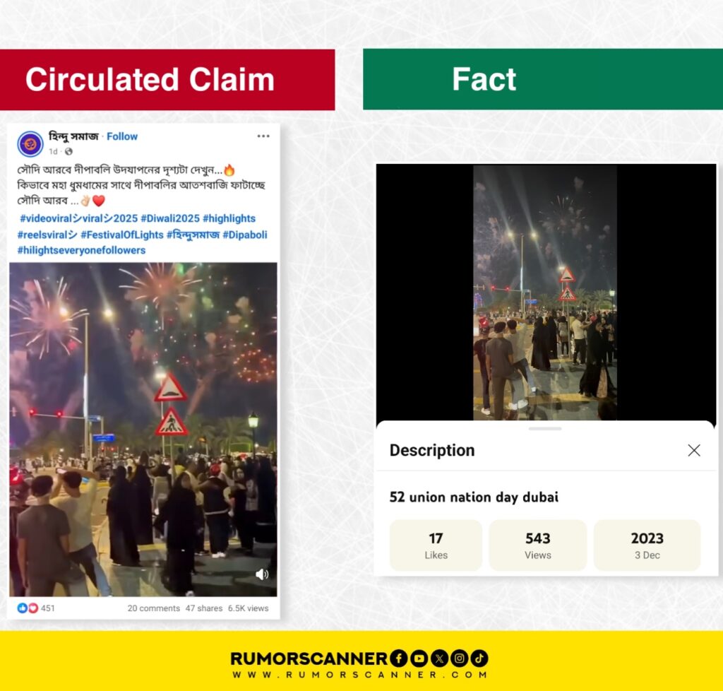 An investigation by the Rumor Scanner team found that the video in question is not a Diwali celebration in Saudi Arabia. The video is not even from Saudi Arabia. In reality, the video shows the celebration of Dubai’s 52nd National Day in December 2023, which is being circulated with the claim in question.