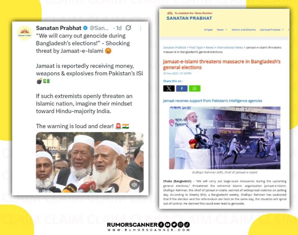 The Rumor Scanner Team’s investigation found that the Amir of Bangladesh Jamaat-e-Islami, Dr. Shafiqur Rahman, did not make the comment, “We will carry out genocide during Bangladesh’s elections.” In fact, his actual statement, “If a referendum is held on the day of the election, there is a possibility of an election genocide,” was distorted and circulated with the discussed claim.