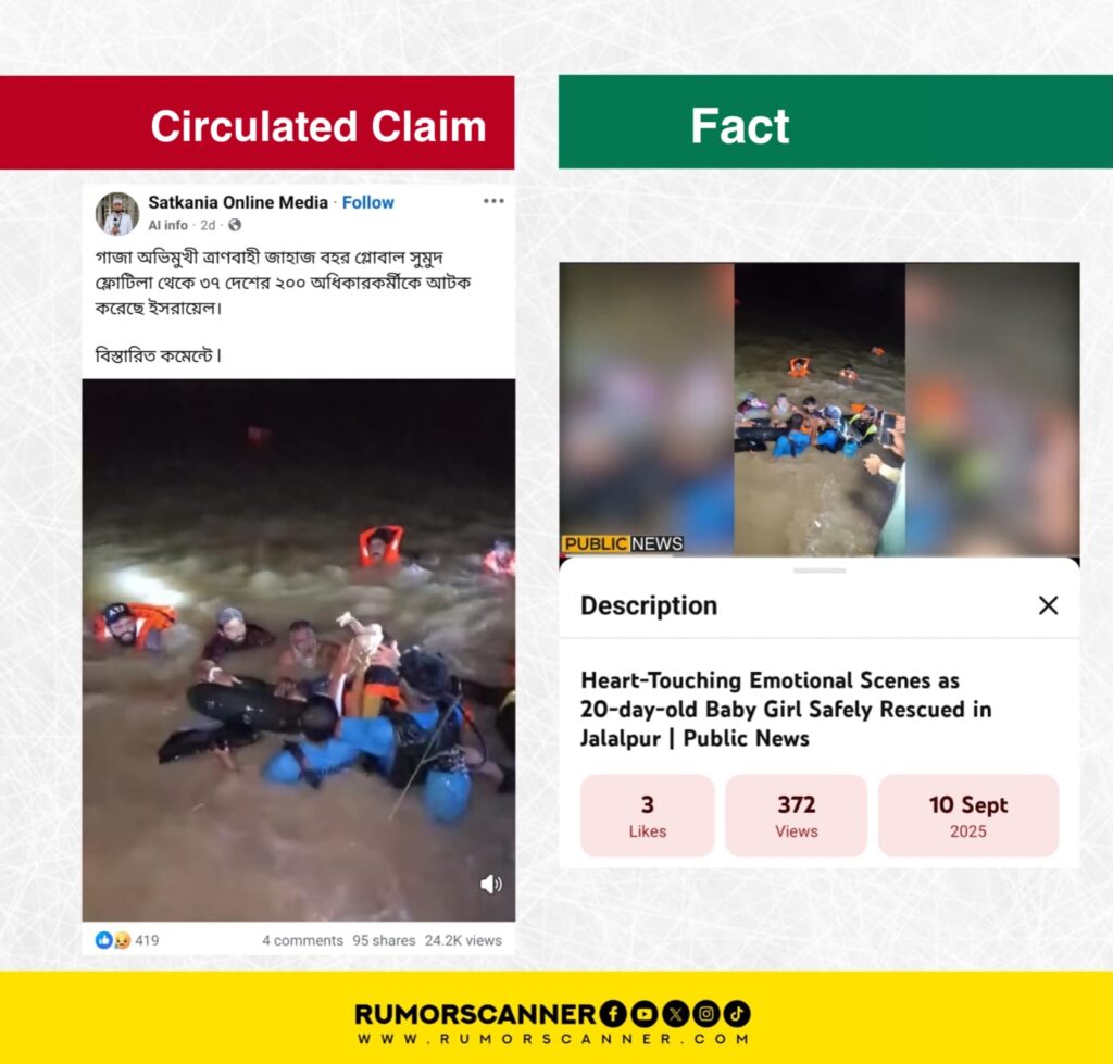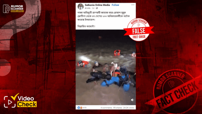 The Rumor Scanner team’s investigation found that the video in question is not of the arrest of activists from the Global Sumud Flotilla. In reality, a video of a rescue boat accident during the recent severe floods in Multan, Pakistan, has been circulated with the said claim.