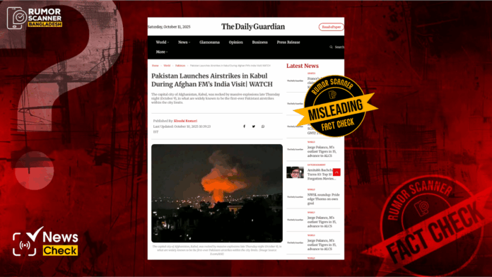 On October 10, the sound of multiple explosions was heard in Afghanistan’s capital, Kabul. The Taliban government and local Afghan media claimed these were airstrikes. The Taliban government blamed Pakistan for these alleged airstrikes. Recently, in reports published by domestic media on this incident, a photo was published claiming to be a scene from the said attack. The circulated photo shows smoke from an explosion in the night sky.