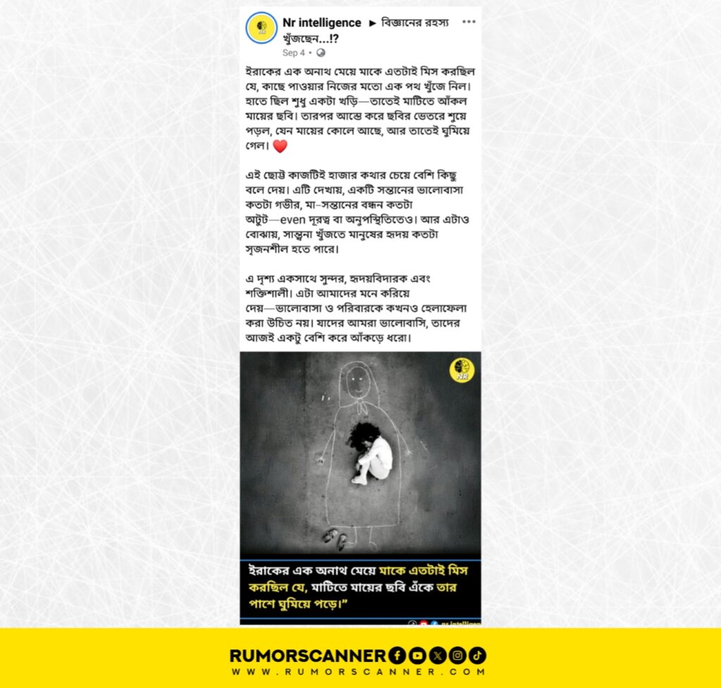 Therefore, an artwork photo is being circulated with the false claim that it is an orphaned Iraqi girl drawing her mother’s picture; which is false.