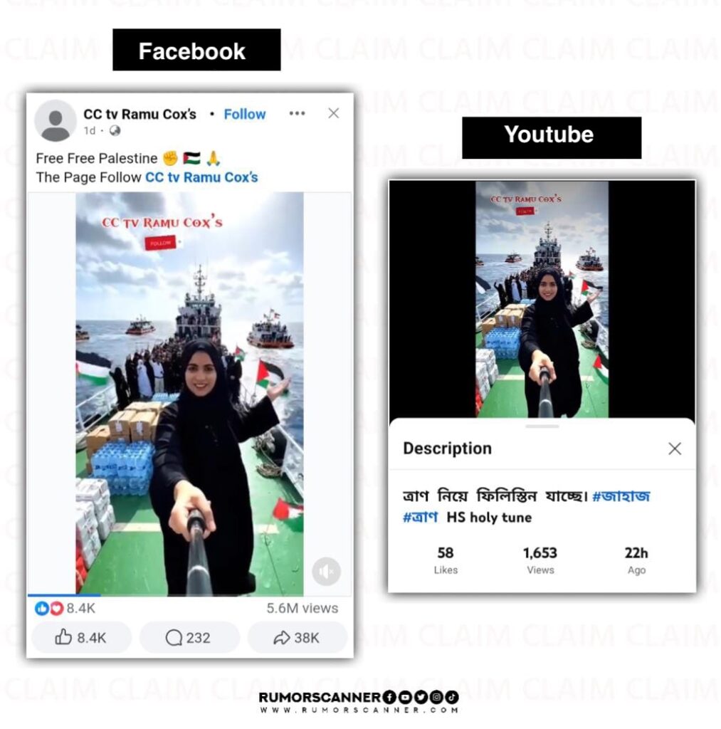 The Rumor Scanner team’s investigation found that the circulated video is not an authentic video of a journey by ship with aid for Gaza. In reality, this fake video was created with the help of artificial intelligence (AI) technology.