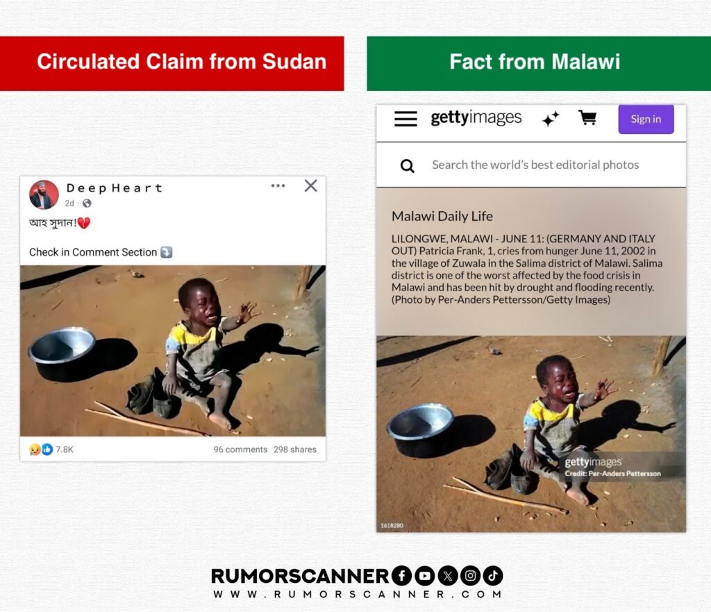 Rumor Scanner’s investigation also found this photo on the Getty Images website. It is known that the photo is from 2002. It is a scene of a hungry child named Patricia Frank crying during the food crisis in Malawi.