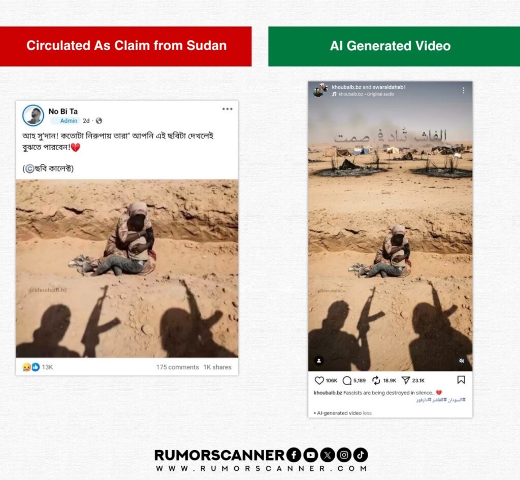 Various photos and videos of this devastating humanitarian crisis in Sudan are rapidly spreading across social media. However, amidst this flow of information, multiple false and misleading pieces of information have also been circulated on various platforms. Rumor Scanner’s investigation found false information regarding 8 photos and 1 video circulated on social media.
