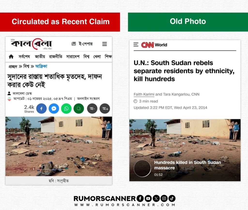 Rumor Scanner’s investigation found the same photo attached to a report published on the Al Jazeera website in 2015. According to the description, this is a scene from a mosque in Bentiu town in Eastern South Sudan. A CNN report published in 2014 also mentioned the same information about the photo.