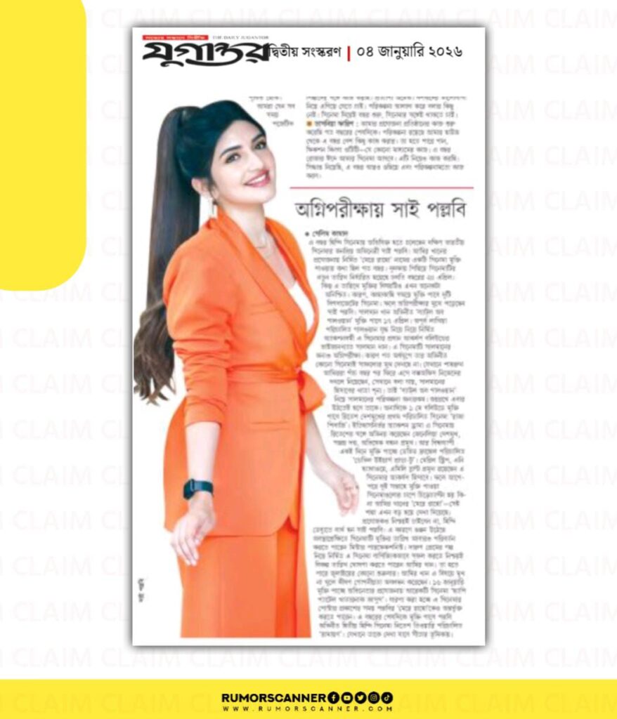 দক্ষিণ ভারতীয় অভিনেত্রী সাই পল্লবী অভিনীত ‘মেরে রাহো’ সিনেমার বিষয়ে সম্প্রতি মূলধারার গণমাধ্যম ‘যুগান্তর’ একটি প্রতিবেদন প্রকাশ করেছে। উক্ত প্রতিবেদনে সাই পল্লবীর ছবি দাবিতে একটি ছবি সংযুক্ত করা হয়েছে।