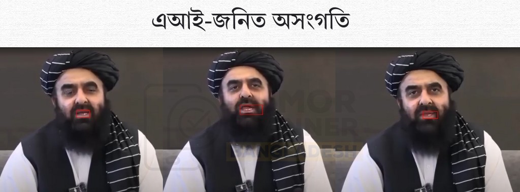 ভিডিওটি পর্যবেক্ষণ করে রিউমর স্ক্যানার দেখেছে, কিছু ফ্রেমে মুত্তাকির দাঁত অদৃশ্য হয়ে যায় এবং পরবর্তী ফ্রেমে পুনরায় দৃশ্যমান হয়, এটি কৃত্রিম বুদ্ধিমত্তা (এআই) দিয়ে তৈরি কনটেন্টের সাধারণ একটি বৈশিষ্ট্য।