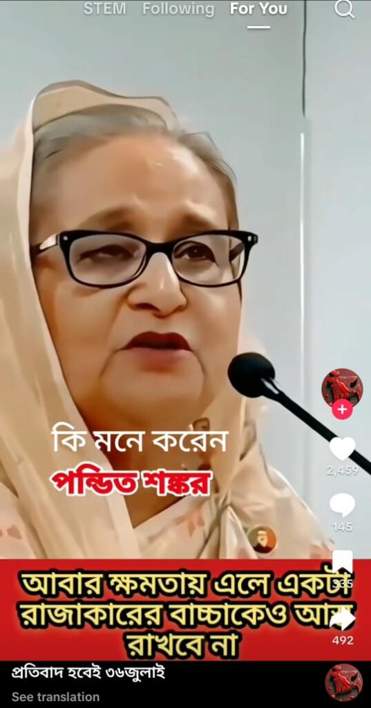 সম্প্রতি, শেখ হাসিনার ভাষণ দাবিতে একটি ভিডিও সামাজিক যোগাযোগ মাধ্যমে প্রচার করা হয়েছে। উক্ত ভিডিওতে শেখ হাসিনাকে ‘আবার ক্ষমতায় এলে একটা রাজাকারের বাচ্চাকেও আস্ত রাখব না, দেশে একদলীয় শাসন কায়েম করবো’ বলতে দেখা যায়।
