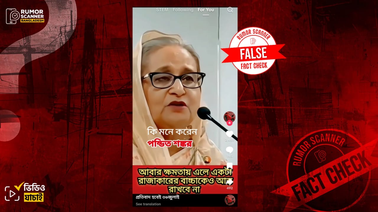 একদলীয় শাসন প্রতিষ্ঠার বিষয়ে শেখ হাসিনার বক্তব্য দাবিতে এআই দিয়ে তৈরি ভিডিও প্রচার