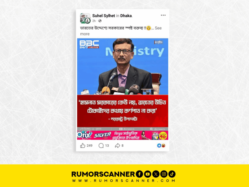 তবে, গণমাধ্যমটির ফেসবুক পেজে গত বছরের ১৭ ডিসেম্বর ‘হাসনাত সরকারের কেউ নয়, তার বক্তব্য নিয়ে দিল্লির উদ্বেগ অবান্তর : পররাষ্ট্র উপদেষ্টা’ শীর্ষক শিরোনামের একটি ফটোকার্ড খুঁজে পাওয়া যায়।