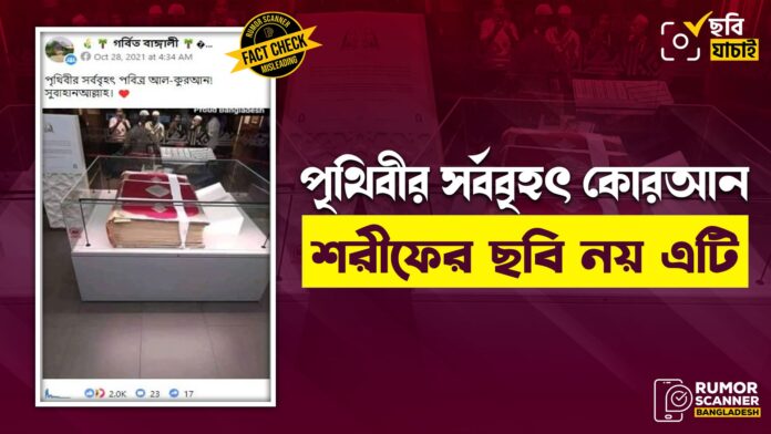 সম্প্রতি, “পৃথিবীর সর্ববৃহৎ পবিত্র আল-কুরআন” শীর্ষক শিরোনামে একটি কোরআন শরীফের ছবি সামাজিক যোগাযোগ মাধ্যমগুলোতে ছড়িয়ে পড়েছে।