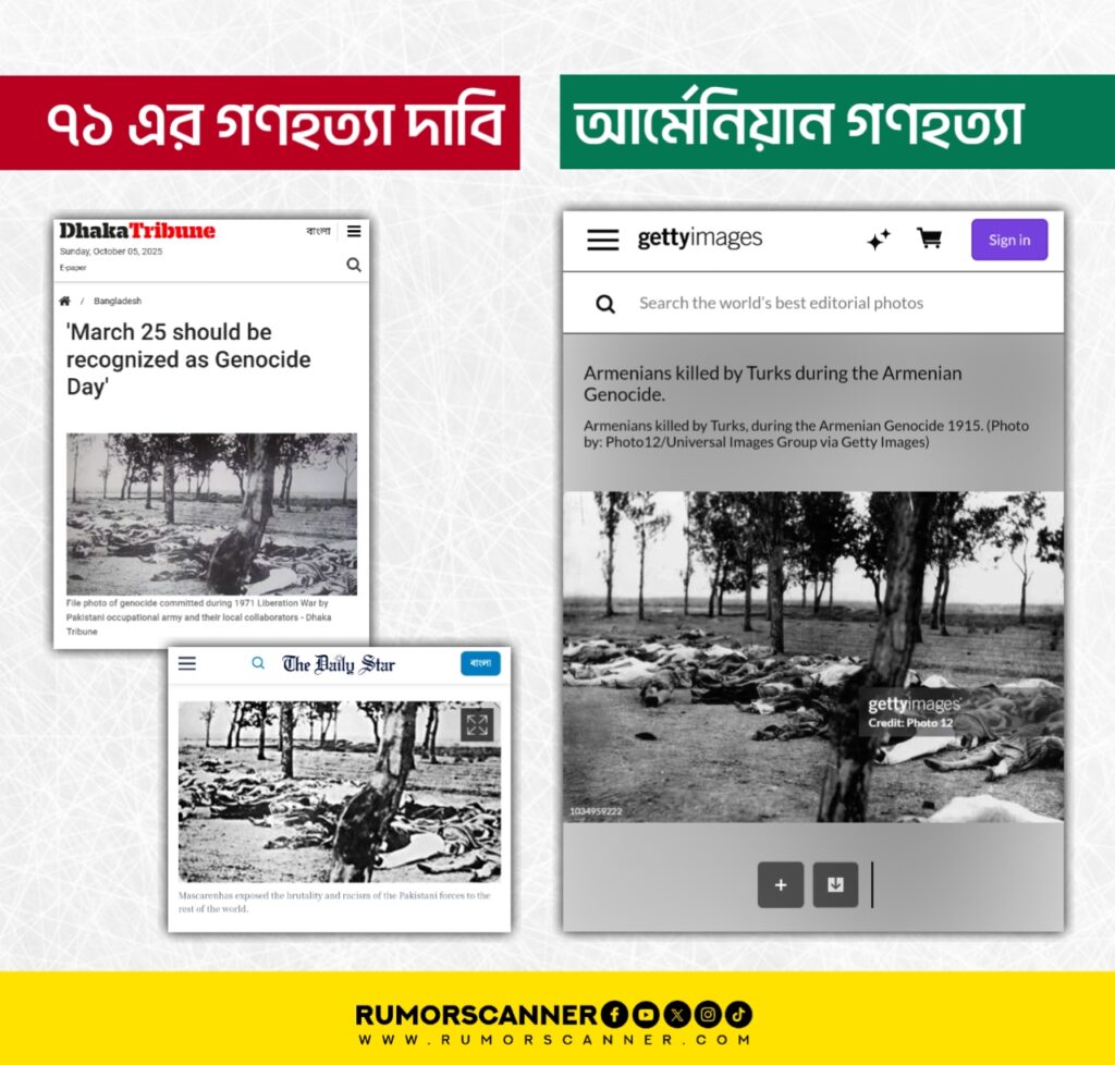 মুক্তিযুদ্ধের সময় নিহত বাঙালিদের মরদেহের ছবি দাবিতে আর্মেনিয়ান গণহত্যার ছবি প্রচার