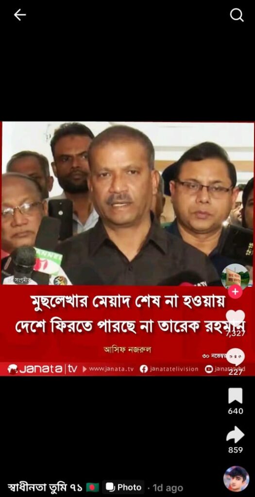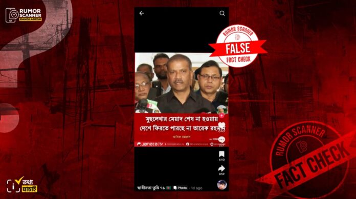 সম্প্রতি, ‘মুছলেখার মেয়াদ শেষ না হওয়ায় দেশে ফিরতে পারছে না তারেক রহমান’ শিরোনামে আইন উপদেষ্টা অধ্যাপক আসিফ নজরুলকে উদ্ধৃত করে একটি ফটোকার্ড সামাজিক যোগাযোগ মাধ্যমে প্রচার করা হয়েছে।
