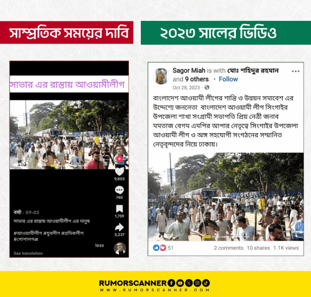 অর্থাৎ, এটি সাভারে আওয়ামী লীগের সাম্প্রতিক সময়ের কোনো মিছিলের দৃশ্য নয় তা নিশ্চিতভাবে বলা যাচ্ছে।