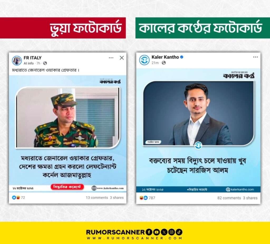 পরবর্তীতে আলোচিত ফটোকার্ডটি পর্যবেক্ষণে দেখা যায়, এতে কালের কণ্ঠের লোগো এবং ফটোকার্ডটি প্রকাশের তারিখ হিসেবে ১২ অক্টোবর, ২০২৫ উল্লেখ রয়েছে।