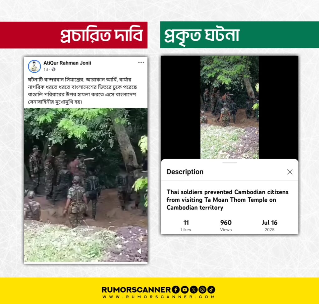 থাই-কম্বোডিয়ান সেনাদের বাকবিতণ্ডার ভিডিওকে বান্দরবান সীমান্তে আরাকান আর্মি-বাংলাদেশ সেনাবাহিনীর ভিডিও দাবিতে প্রচার