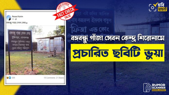সম্প্রতি “বঙ্গবন্ধু গাঁজা সেবন কেন্দ্র। এখানে বঙ্গবন্ধুর সৈনিকরা অত্যন্ত নিরাপদে গাজা সেবন করিতে পারিবেন।” শীর্ষক শিরোনামে একটি ছবি সামাজিক যোগাযোগ মাধ্যম ফেসবুকে ছড়িয়ে পড়েছে।