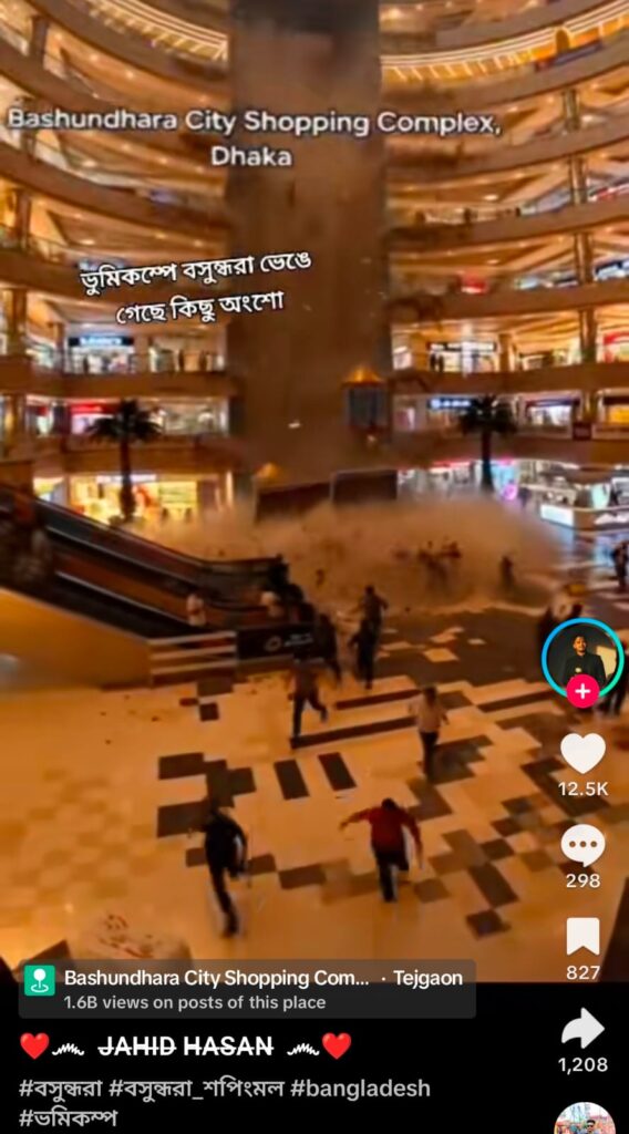 ভূমিকম্পে বসুন্ধরা সিটি শপিং কমপ্লেক্সের কিছু অংশ ভেঙে গেছে দাবিতে একটি ভিডিও ছড়িয়েছে টিকটকে।