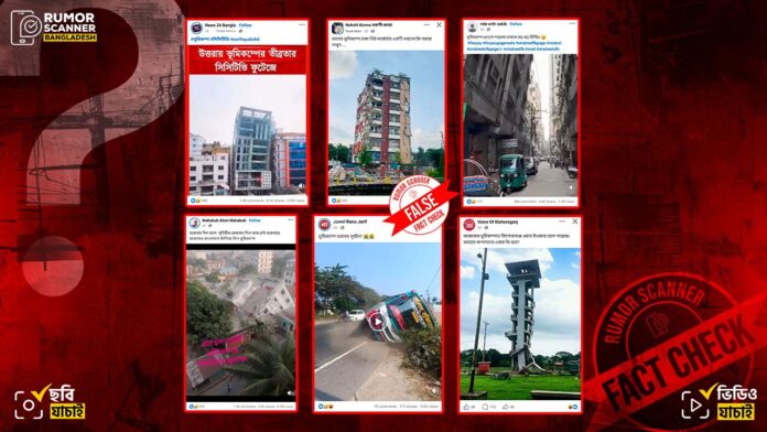 পরপর ভূমিকম্পে সাধারণ মানুষের মধ্যে আতঙ্ক দেখা দিয়েছে। এই পরিস্থিতিতে ধ্বংসপ্রাপ্ত ভবনের দৃশ্য দাবি করে সামাজিক যোগাযোগমাধ্যমে অসংখ্য কৃত্রিম বুদ্ধিমত্তা বা এআই দিয়ে তৈরি ভিডিও ও ছবি ছড়িয়ে পড়ছে। রিউমর স্ক্যানারের অনুসন্ধানে ভূমিকম্পের দৃশ্য দাবিতে প্রচারিত এসব কনটেন্টের মধ্যে ভিডিওভিত্তিক ১২টি এবং ছবিভিত্তিক ২টির পর্যালোচনা নিম্নে তুলে ধরা হলো।