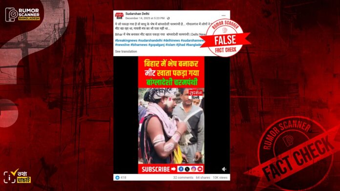 সম্প্রতি, “যে ধরা পড়েছে সে ভিক্ষুর বেশে বাংলাদেশি জঙ্গী… গোপালগঞ্জে মাংস খেয়ে ধরা পড়লো মানুষ, গায়ত্রী মন্ত্রের খবরও জানতো না” (অনূদিত) শীর্ষক দাবিতে একটি ভিডিও সামাজিক যোগাযোগ মাধ্যমে প্রচার করা হয়েছে।