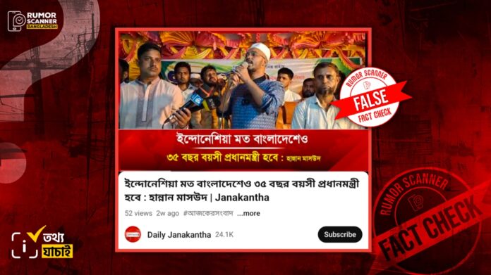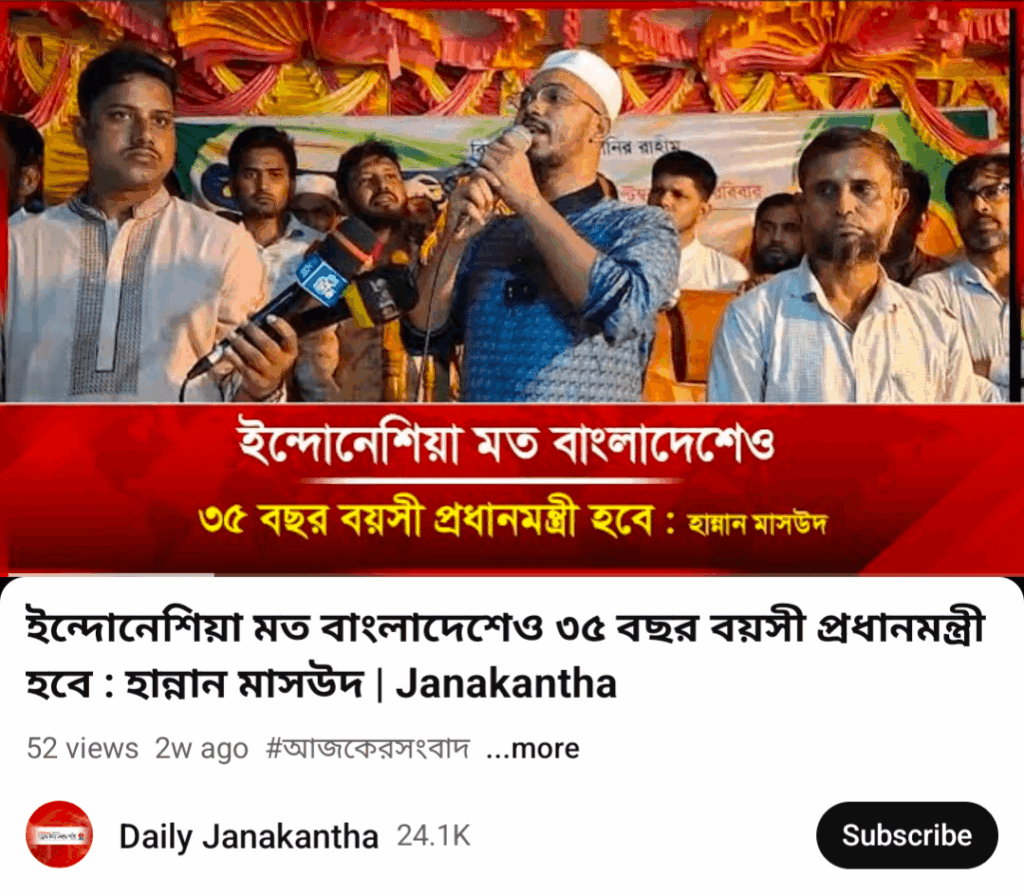 গত ২৮ সেপ্টেম্বর নোয়াখালীর হাতিয়ার চানন্দী ইউনিয়নে জাতীয় নাগরিক পার্টি আয়োজিত ঐক্য ও সংহতির সমাবেশে জাতীয় নাগরিক পার্টির (এনসিপি) জ্যেষ্ঠ যুগ্ম মুখ্য সমন্বয়ক ও রাজনৈতিক পর্ষদের সদস্য আবদুল হান্নান মাসউদ বক্তব্য প্রদানকালে দাবি করেন, ইন্দোনেশিয়ার প্রধানমন্ত্রীর মাত্র ৩৫ বছর বয়সে প্রধানমন্ত্রী হয়েছেন এবং বারাক ওবামাও ৩৫ বছর বয়সে যুক্তরাষ্ট্রের প্রেসিডেন্ট নির্বাচিত হন।