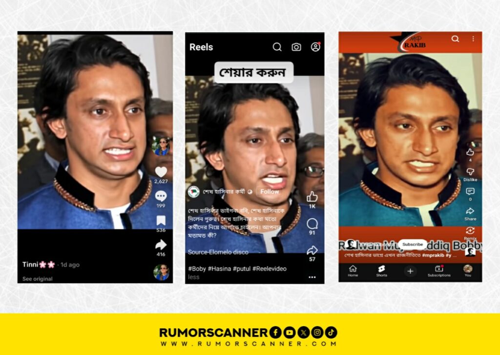 এ বিষয়ে অনুসন্ধানে মূলধারার গণমাধ্যম সূত্রে শেখ হাসিনার ভাগনে রাদওয়ান মুজিব সিদ্দিক ববি ভিডিও বার্তা দিয়েছেন শীর্ষক কোনো ঘটনার উল্লেখ পাওয়া যায়নি। এমনকি আওয়ামী লীগ সংশ্লিষ্ট নির্ভরযোগ্য সূত্রেও এই ভিডিওর বিষয়ে কোনো তথ্য মেলেনি। ববির লিংকডইন এবং এক্স অ্যাকাউন্টেও এমন ভিডিওর অস্তিত্ব মেলেনি।