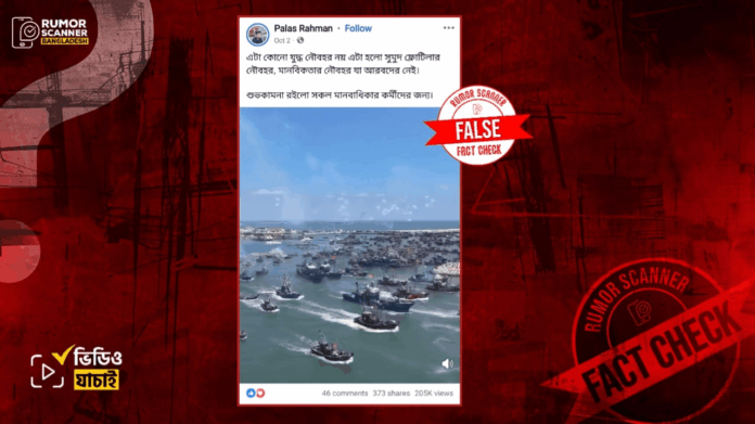 সম্প্রতি, গাজায় চলমান ইসরায়েলের অবৈধ অবরোধের প্রতিবাদে গত ৩১ আগস্ট স্পেনের বার্সেলোনা থেকে যাত্রা শুরু করে আন্তর্জাতিক মানবাধিকার কর্মীদের ত্রাণ নিয়ে যাওয়ার নৌ উদ্যোগ গ্লোবাল সুমুদ ফ্লোটিলা। পরবর্তীতে ১৩ থেকে ১৫ সেপ্টেম্বর তিউনিসিয়া, ইতালির সিসিলি দ্বীপ ও গ্রিসের সাইরাস দ্বীপ থেকে আরও কিছু নৌযান ত্রাণ নিয়ে বহরে যুক্ত হয়। এরই প্রেক্ষিতে সম্প্রতি সামাজিক যোগাযোগ মাধ্যমে একটি ভিডিও প্রচার করে দাবি করা হয়েছে, ভিডিওটি ফ্লোটিলা সমর্থনে নৌবহরের দৃশ্য।