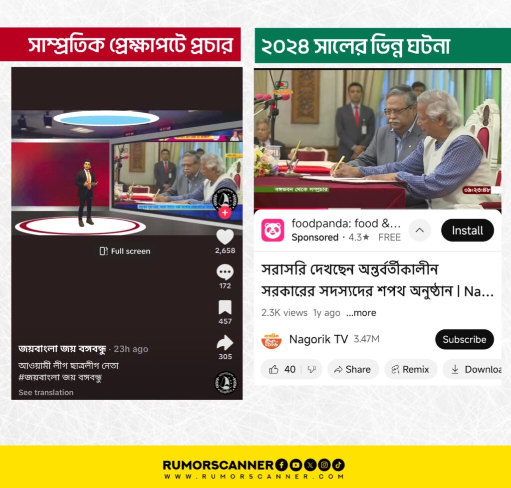 পরবর্তী অনুসন্ধানে প্রচারিত ভিডিওটির বিষয়ে অনুসন্ধানে নাগরিক টিভির ২০২৪ সালের ০৮ আগস্টের একটি লাইভ ভিডিওর সাথে আলোচিত ভিডিওটির মিল পাওয়া যায়। মূলত ভিডিওটি ছিল অন্তর্বর্তরকালীন সরকারের উপদেষ্টাদের শপথ অনুষ্ঠানের।