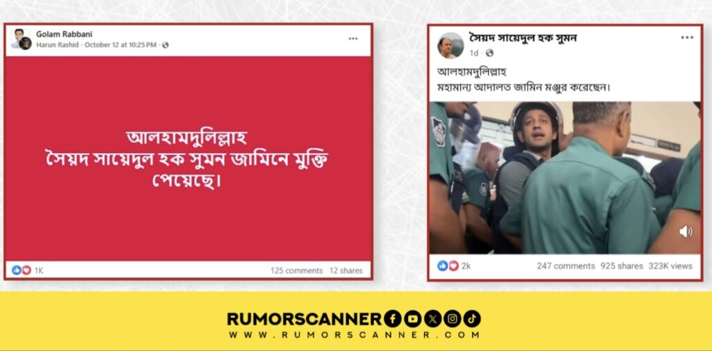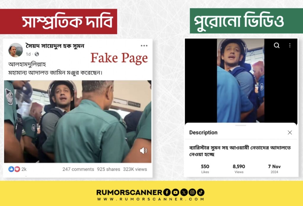 রিউমর স্ক্যানার টিমের অনুসন্ধানে জানা যায়, হবিগঞ্জ-৪ আসনের সাবেক সংসদ সদস্য ব্যারিস্টার সৈয়দ সায়েদুল হক সুমন জামিন পাননি এবং প্রচারিত ভিডিওটি সাম্প্রতিক সময়ের নয়। প্রকৃতপক্ষে, কোনো তথ্য প্রমাণ ছাড়াই পুরোনো একটি ভিডিও আলোচিত দাবিতে প্রচার করা হচ্ছে।