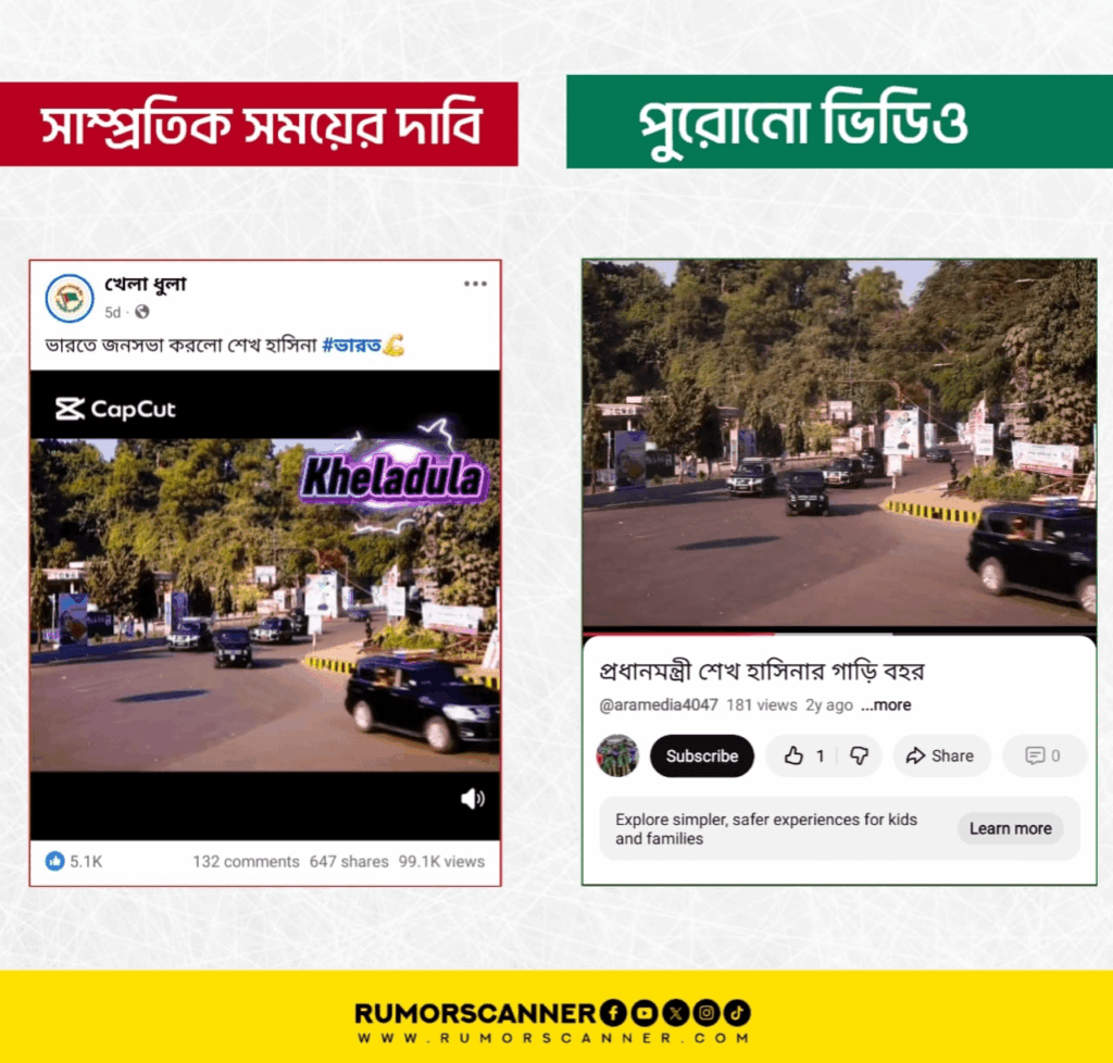সম্প্রতি, “ভারতে জনসভা করলো শেখ হাসিনা” শীর্ষক দাবিতে একটি ভিডিও সামাজিক যোগাযোগ মাধ্যমে প্রচার করা হয়েছে।