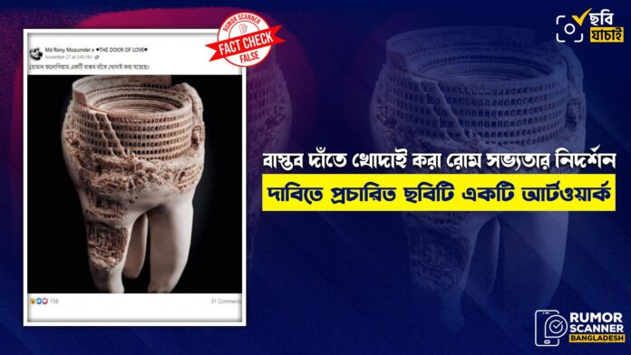 সম্প্রতি, “রোমান কলোসিয়াম একটি বাস্তব দাঁতে খোদাই করা হয়েছে।” শীর্ষক শিরোনামে দাঁতের মাঝে খোদাই করা একটি ছবি সামাজিক যোগাযোগ মাধ্যম ফেসবুকে ছড়িয়ে পড়েছে।