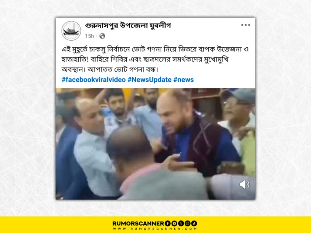 সুতরাং, ভিন্ন ঘটনার একটি পুরোনো ভিডিওকে চাকসু নির্বাচনের ভোট গণনাকে কেন্দ্র করে উত্তেজনা ও হাতাহাতির দৃশ্য দাবিতে প্রচার করা হয়েছে, যা মিথ্যা।