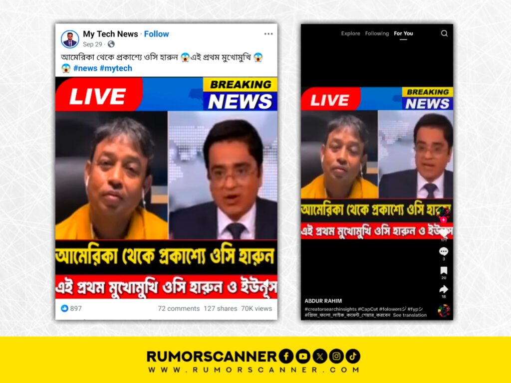 অনুসন্ধানের শুরুতে আলোচিত দাবিতে প্রচারিত ভিডিওটি পর্যালোচনা করে ভিডিওটির শিরোনামে ডিবি হারুন ও অন্তর্বর্তীকালীন সরকারের প্রধান উপদেষ্টা ড. মুহাম্মদ ইউনূসের মুখোমুখি হওয়ার কথা বলা হলেও প্রচারিত ভিডিওটির কোথাও ড. ইউনূসকে দেখতে পাওয়া যায়নি। তবে অনুসন্ধানে প্রায় তিন মাস আগে একই দাবিতে ইউটিউবে একটি ভিডিও প্রচারিত হতে দেখা যায়। যেটিতে হারুন-অর-রশিদ এবং খালেদ মুহিউদ্দীনের পাশাপাশি ড. মুহাম্মদ ইউনূসকেও দেখতে পাওয়া যায়। এমন কিছু ভিডিও দেখুন এখানে এবং এখানে।