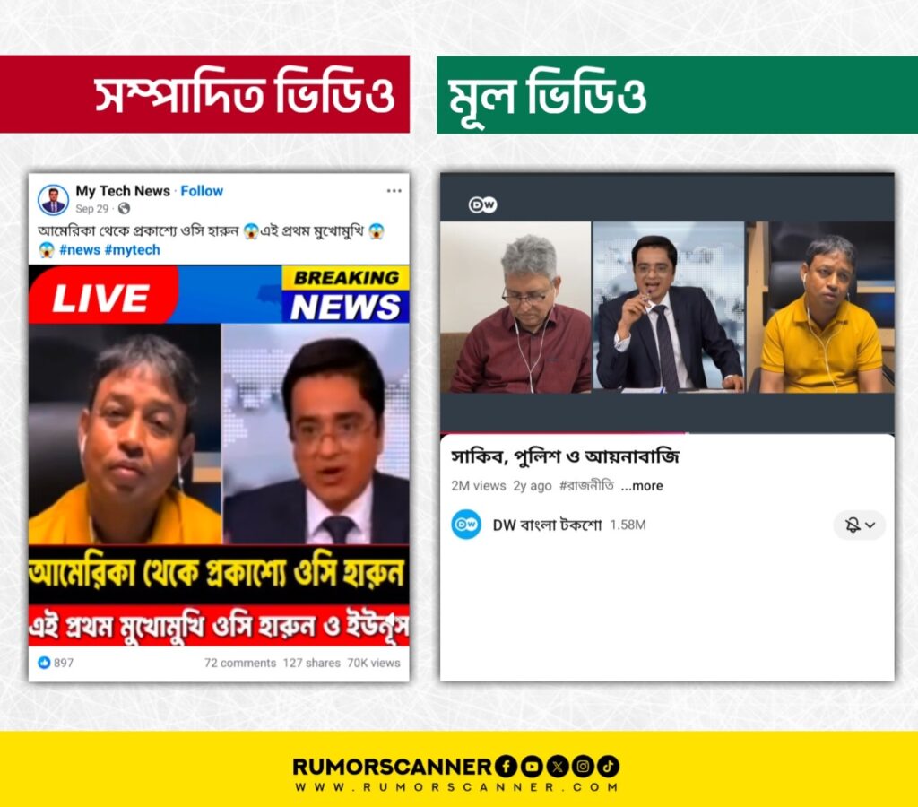 রিউমর স্ক্যানার টিমের অনুসন্ধানে দেখা যায়, সাংবাদিক খালেদ মুহিউদ্দীনের সাথে ডিবির সাবেক অতিরিক্ত কমিশনার হারুন-অর-রশিদের টকশোর ভিডিওটি সাম্প্রতিক সময়ের নয়। প্রকৃতপক্ষে, সাংবাদিক মাসুদ কামাল ও ডিবি হারুন-অর-রশিদকে নিয়ে ২০২৩ সালে ডয়চে ভেলেতে করা একটি টকশোর ভিডিও ডিজিটার প্রযুক্তির সহায়তায় সম্পাদনা করে আলোচিত ভিডিওটি তৈরি করা হয়েছে।