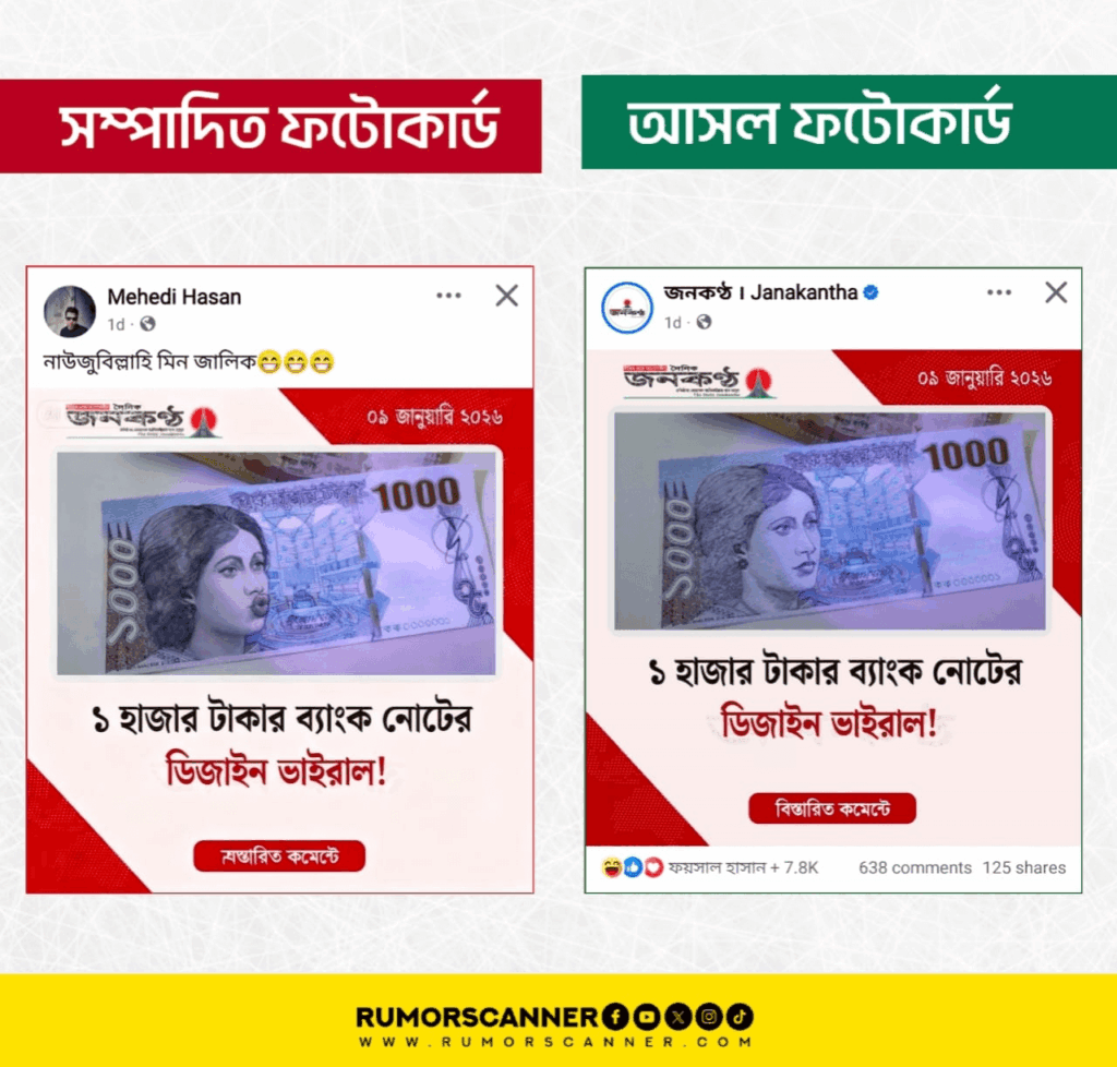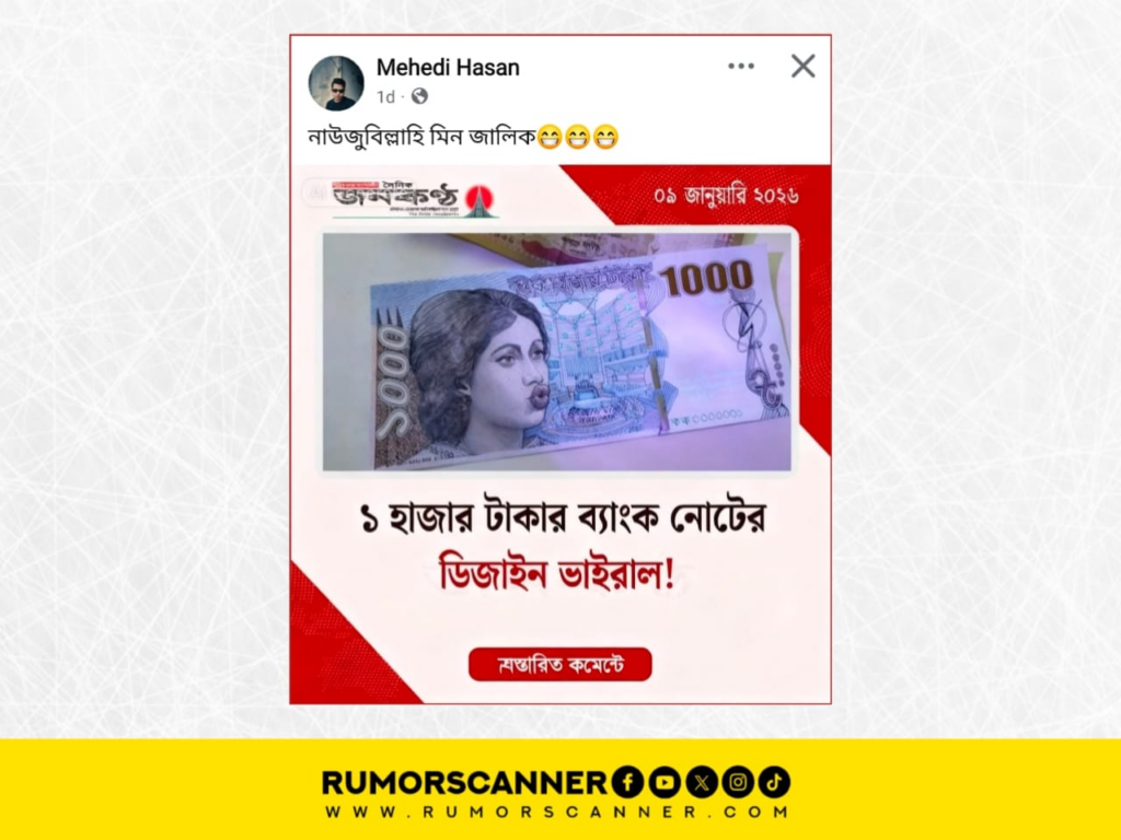 - Janakantha: ঢাবি শিক্ষার্থীর ১০০০ টাকার ব্যাংক নোট ডিজাইন ভাইরাল!