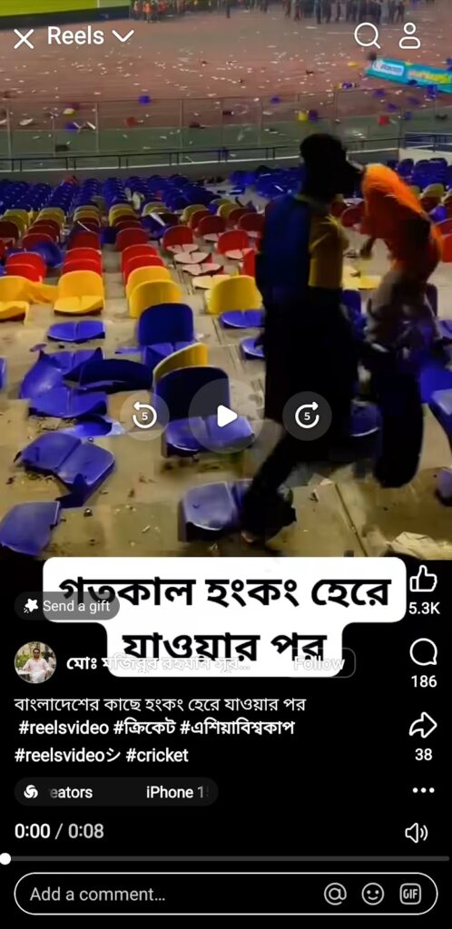 অর্থাৎ, প্রচারিত ভিডিওটি বাংলাদেশের কাছে হারের পর হংকং এর বিক্ষুব্ধ দর্শকদের নয় তা নিশ্চিতভাবে বলা যাচ্ছে।