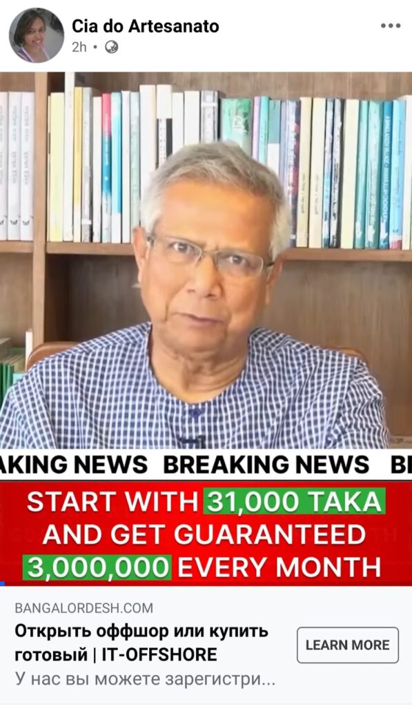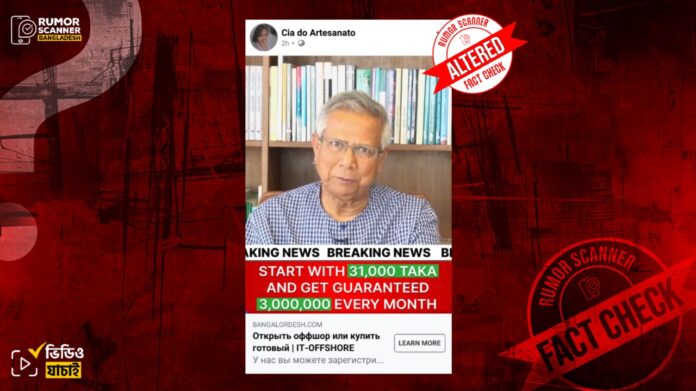 সম্প্রতি ‘START WITH 31,000 TAKA AND GET GUARANTEED 3,000,000 EVERY MONTH’ শিরোনামে বাংলাদেশ ব্যাংকের বিনিয়োগ স্কিম দাবিতে অন্তর্বর্তীকালীন সরকারের প্রধান উপদেষ্টা ড. মুহাম্মদ ইউনূসের একটি ভিডিও সামাজিক যোগাযোগ মাধ্যমে প্রচার করা হয়েছে।