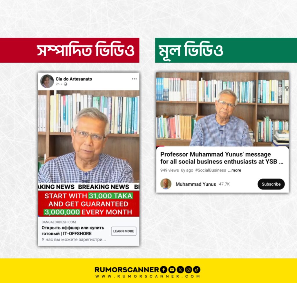 সুতরাং, ড. ইউনূস কর্তৃক বাংলাদেশ ব্যাংকের বিনিয়োগ স্কিম ঘোষণা দাবিতে প্রচারিত ভিডিওটি সম্পাদিত।