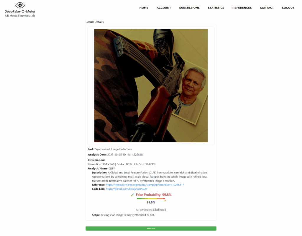 সার্বিক বিশ্লেষণে দেখা যায়, মূল ছবিটিকে ভিত্তি করে এআই প্রযুক্তি ব্যবহার করে আলোচিত ছবিটি তৈরি করা হয়েছে। এ বিষয়ে অধিকতর নিশ্চিত হওয়ার জন্য এআই কনটেন্ট শনাক্তকারী প্ল্যাটফর্ম ‘ডিপফেক ও মিটার’-এ ছবিটি বিশ্লেষণ করা হয়। প্ল্যাটফর্মটির ‘GLFF (2024)’ মডেল অনুসারে, ছবিটি এআই দিয়ে তৈরি হওয়ার সম্ভাবনা ৯৯ শতাংশেরও বেশি।