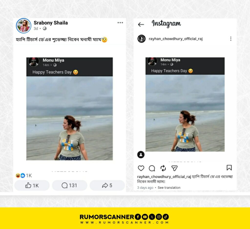 সম্প্রতি, ঢাকা বিশ্ববিদ্যালয়ের সহকারী অধ্যাপক ও বিশ্ববিদ্যালয়টির সহকারী প্রক্টর শেহরীন আমিন ভূঁইয়া (মোনামী)-এর  ছবি দাবিতে ‘হ্যাপি টিচার্স ডে’এর শুভেচ্ছা নিবেন মোনামী ম্যাম’ ক্যাপশনে একটি ছবি সামাজিক যোগাযোগ মাধ্যমে প্রচার করা হয়েছে।