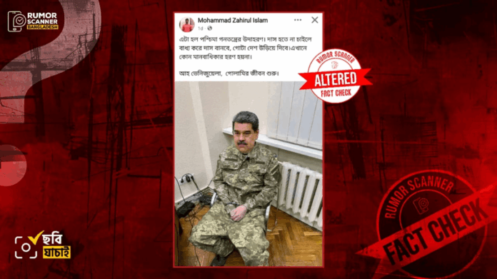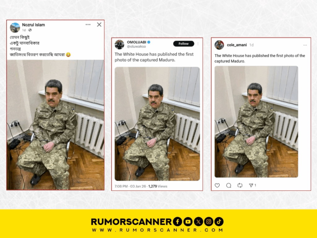 গত ০৩ জানুয়ারি, ভোরে ভেনেজুয়েলার রাজধানী কারাকাসে হামলা চালায় মার্কিন সেনাবাহিনীর বিশেষায়িত ইউনিট ডেল্টা ফোর্স। সেই সাথে দেশটির প্রেসিডেন্ট নিকোলা মাদুরো ও তার স্ত্রী সিলিয়া ফ্লোরেসকে আটক করে যুক্তরাষ্ট্রে নেওয়া হয়েছে বলে জানিয়েছেন মার্কিন প্রেসিডেন্ট ডোনাল্ড ট্রাম্প। এরই প্রেক্ষিতে মাদুরোকে আটকের পরবর্তী সময়ের দৃশ্য দাবিতে একটি ছবি সামাজিক যোগাযোগমাধ্যমে প্রচার করা হয়েছে।