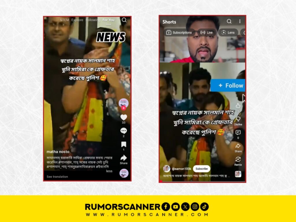 সুতরাং, সালমান শাহ হত্যা মামলার প্রধান আসামি সামিরা হককে পুলিশ গ্রেফতার করেছে দাবিতে পুরোনো ও ভিন্ন ঘটনার ভিডিও প্রচার করা হয়েছে; যা সম্পূর্ণ মিথ্যা।