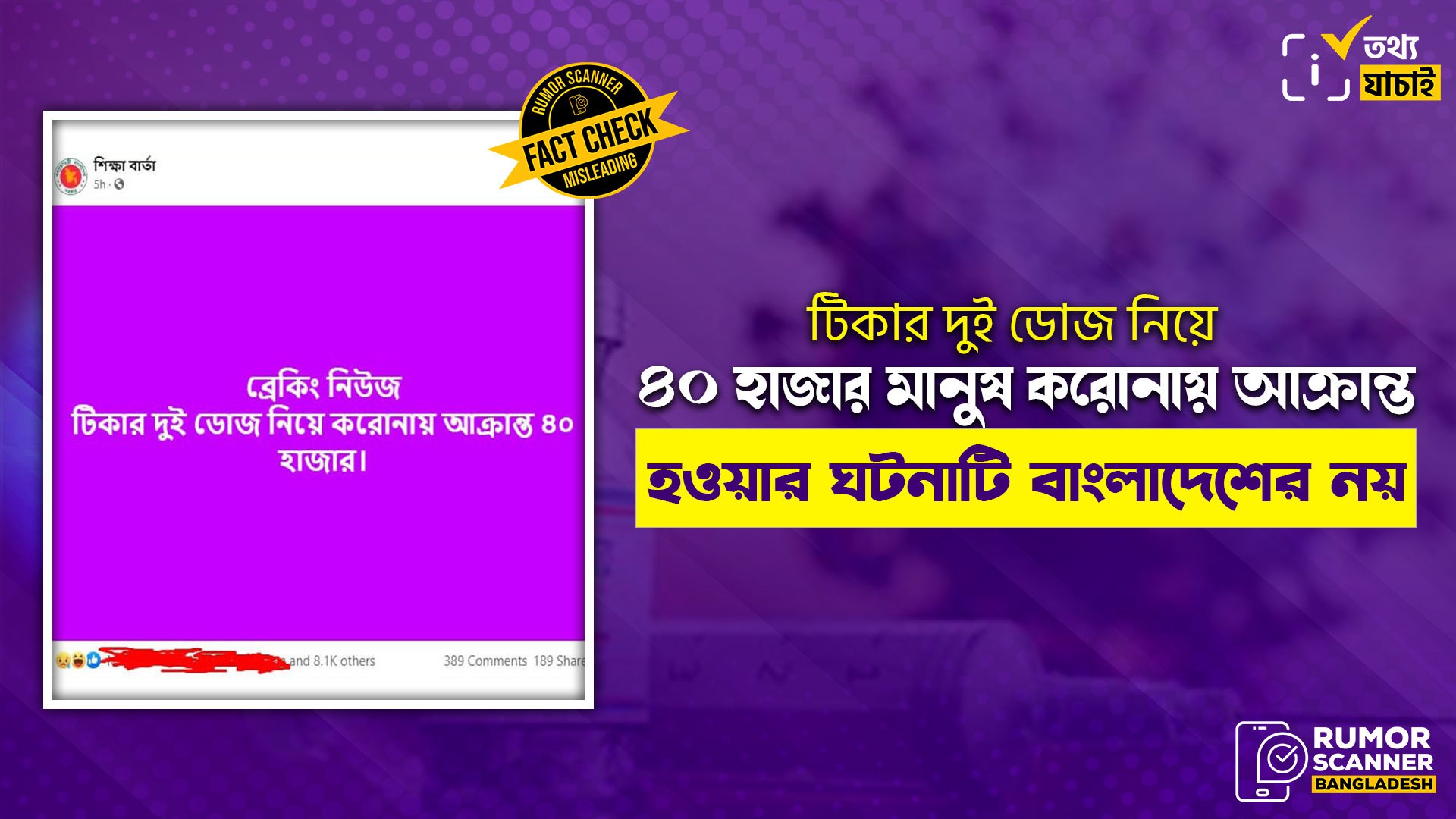 রিউমর স্ক্যানার টিমের অনুসন্ধানে দেখা যায়, উভয় ডোজ টিকা নেয়া সত্ত্বেও ৪০ হাজার মানুষ করোনায় আক্রান্ত হওয়ার তথ্যটি ভারতের কেরালা রাজ্যের, বাংলাদেশের নয়।
