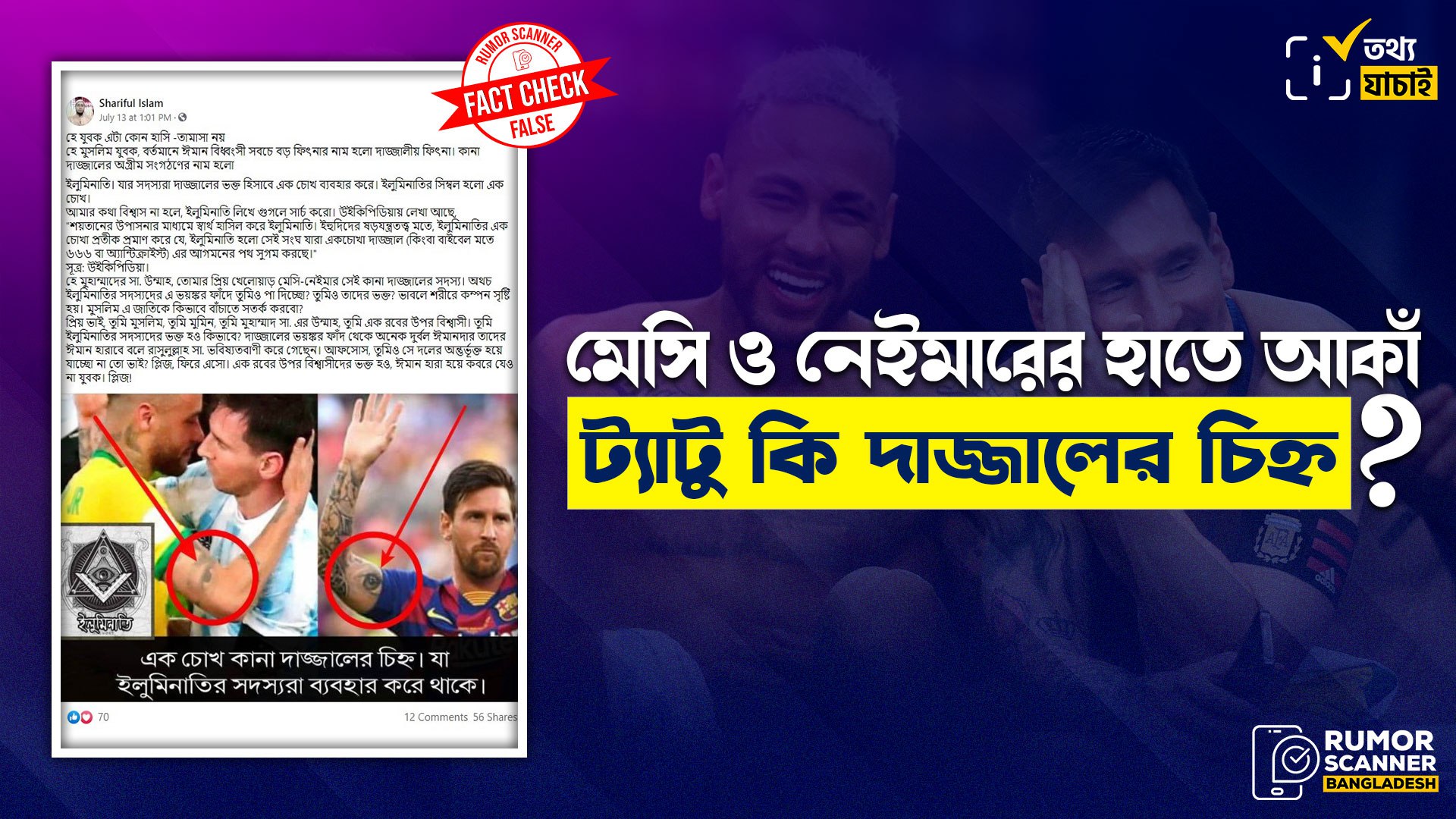 - Claim Review: মেসি ও নেইমারের হাতে আকাঁ চোখের ট্যাটুটি দাজ্জালের চিহ্ন
