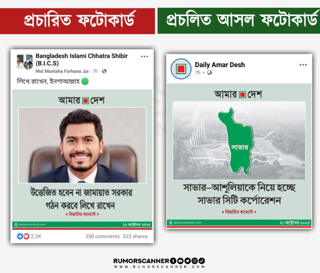 এ বিষয়ে অনুসন্ধানে আলোচিত ফটোকার্ডে আমার দেশের লোগো ও তারিখ হিসেবে ২১ অক্টোবর, ২০২৫ উল্লেখ থাকার সূত্রে সংবাদমাধ্যমটির ওয়েবসাইট এবং ফেসবুক পেজ পর্যবেক্ষণ করলে সাম্প্রতিক সময়ে উক্ত তথ্য সম্বলিত কোনো ফটোকার্ড বা সংবাদ খুঁজে পাওয়া যায়নি। সংবাদমাধ্যমটির ওয়েবসাইটেও উক্ত দাবির বিষয়ে কোনো প্রতিবেদন খুঁজে পাওয়া যায়নি।