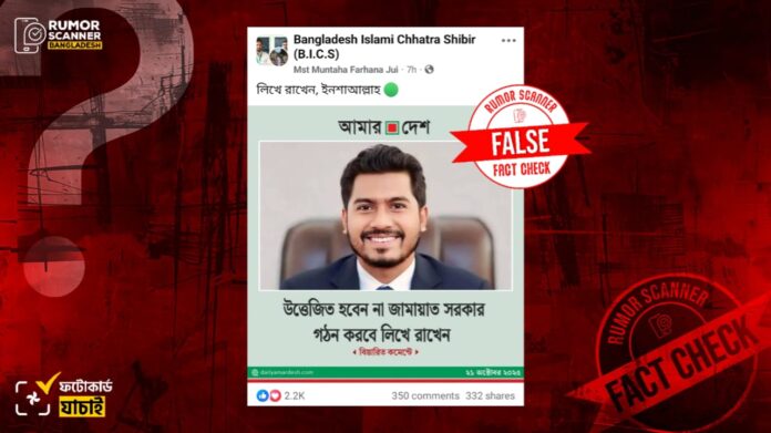 অর্থাৎ, দাবি প্রচার করা হয়েছে, নুরুল হক নুর বলেছেন, ‘উত্তেজিত হবেন না জামায়াত সরকার গঠন করবে লিখে রাখেন’।